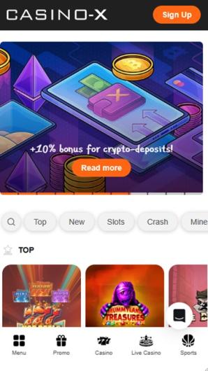 Genoeg slots om uit te kiezen bij Casino-X (Weet niet waar de X voor staat) Niets bijzonders aan de welkomstbonus die erg basic en standaard is. Ze hebben wekelijkse toernooien. altijd leuk om deze te hebben om mee te spelen en hopelijk wat extra's te winnen! ze betalen snel uit als je het vergelijkt met andere casino's