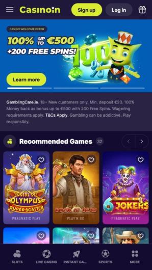 Als je op de website van Casinoin komt, word je verwelkomd door een grappig, vliegend stripfiguurtje. Hij laat je alle promoties zien en fungeert als gids als je door het spelaanbod browset.