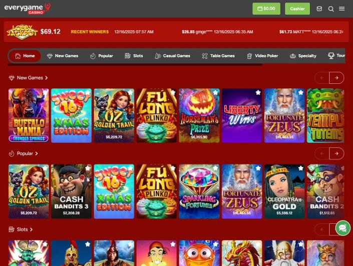 Omdat ze RTG als belangrijkste partner hebben, kunnen spelers ervan op aan dat Everygame Casino alle bekende spelgenres in huis heeft. Er zijn om te beginnen veel gokkasten met daarnaast een aardige selectie video poker- en tafelspellen. Er is ook een sectie ingericht met Specialty Games.