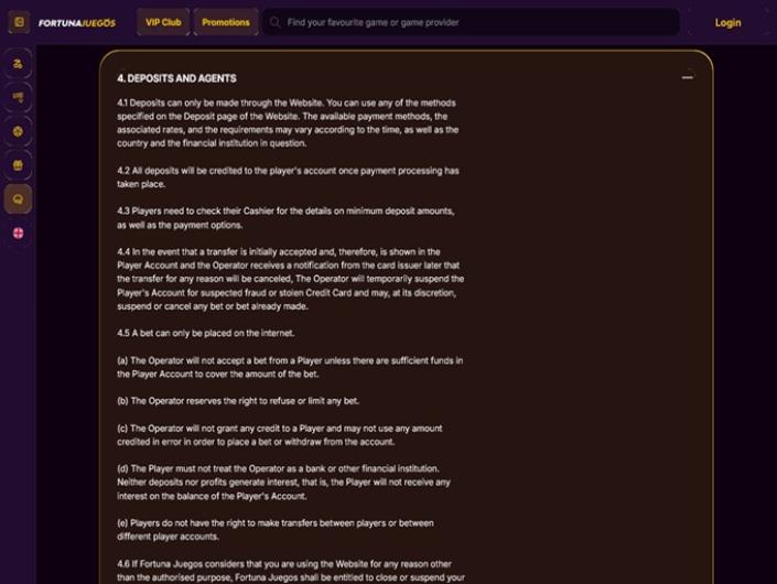A Risk & Fraud afdeling bewaakt zorgvuldig transacties en blokkeert elke activiteit die mogelijk risico heeft. Het is invloedrijk in de bescherming van de spelers en het casino van frauduleuze handelingen. Fortuna Juego heeft een vergunning van de regering van Curaçao.