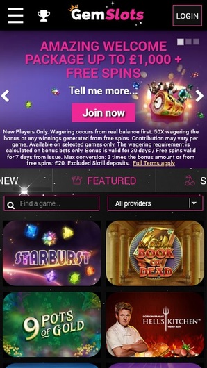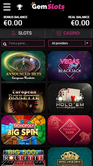 Gemslots, is een leuk casino, dat de meeste bekende slotaanbieders aanbiedt, zoals netent microgaming, ook hun klantenondersteuning is goed, ook al heeft het mobiele casino veel spellen om uit te kiezen! en de welkomstbonussen zijn erg mooi, de inzetvereiste is behoorlijk hoog, maar eerlijk genoeg om het te vernietigen!...