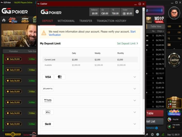 GGPoker faciliteert makkelijke stortingen met een ruim aanbod van betrouwbare betaalmethoden. Zo kunnen spelers in een veilige omgeving snel geld gaan inzetten op een van de vele pokerspellen.