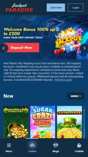 Jackpot Paradise staat op plaats 218 in de lijst van 409 gerecenseerde Casino's met een score van 2.6 afgeleid uit 113 stemmen, en heeft 4365 Gokkasten van 1x2gaming, Ash Gaming, Barcrest en 81 andere met een gemiddelde rating van 3.8 afgeleid uit 153572 stemmen.