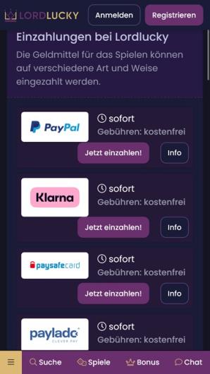 Ik heb me een paar maanden geleden aangemeld bij Lord Lucky. Ik deed de aanbevolen verificatie voordat ik het spel startte en het ging snel en gemakkelijk. Een door mij geregelde uitbetaling werkte zonder verdere moeilijkheden. Enige tijd geleden zijn de inzetvereisten echter verhoogd van 35x naar 45x. U kunt munten verzamelen voor stortingen en tijdens het spelen en profiteren van verschillende bonussen. Maar ze moeten 75x worden geïmplementeerd en de winst is beperkt tot max. 100 € gelimiteerd. Ik heb nog niets met ondersteuning te maken gehad. Ik speel eigenlijk graag bij Lord Lucky en behoort naar mijn mening tot een van de betere casino's.