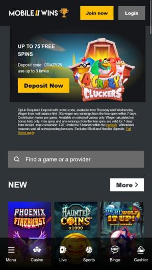 Nothing special about mobile wins, looks to come from the same group (hippo zino hippo drome casino etc) and i don't like there group, super slow payments, website's are nothing special but boring. support sometimes hard to reach or they are a bit in a ''not want too help you out'' modus as i call it;) game variety is good all games on board from the offering providers! mobile site also good works fast without any problems, wagering on all of there bonuses is way too high for sure a point what is not attractive 50x is to high, lots of other places offer better service and lower wagers on bonuses, but mobile wins is not the worst casino;)