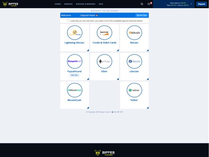 - Ripper Casino kan kosten in rekening brengen voor uitbetalingen, afhankelijk van de gekozen opnamemethode