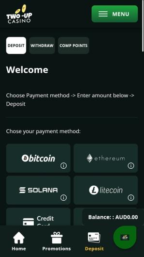 Two-Up Casino is (mede) opgezet voor Australische spelers die tegenwoordig maar weinig opties hebben om online te gokken. Het casino maakt gebruik van een spelplatform dat aangedreven wordt door Real Time Gaming. De naam van het casino is afgeleid van een traditioneel Australisch gokspelletje dat vooral op Anzac Day wordt gespeeld, de nationale herdenkingsdag voor gesneuvelde soldaten. Dit gebeurt elk jaar op 25 april. De goksite is gespecialiseerd in een groot assortiment ‘pokies’ (gokkasten), kaartspelletjes, video poker en progressieve jackpotspellen. De interface is toegankelijk via een instant play versie en kan ook worden gedownload. Er worden verscheidene stortings- en opnamemethodes aangeboden, waaronder de immer populaire cryptomunt Bitcoin. Maak een account aan in slechts een paar minuten en profiteer van een gulle bonus om je gokavontuur te beginnen!