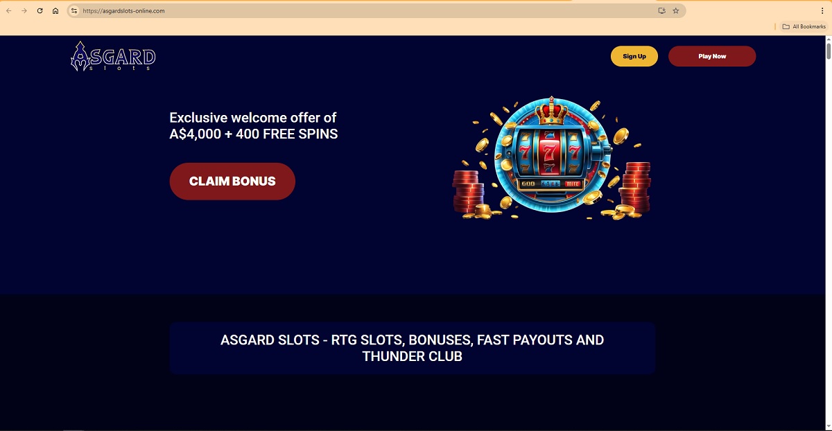 The website uses the official “Asgard Slots” logo and branding elements
