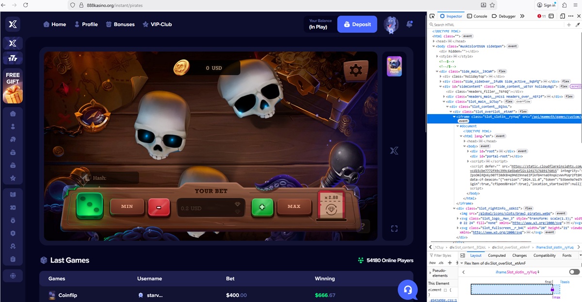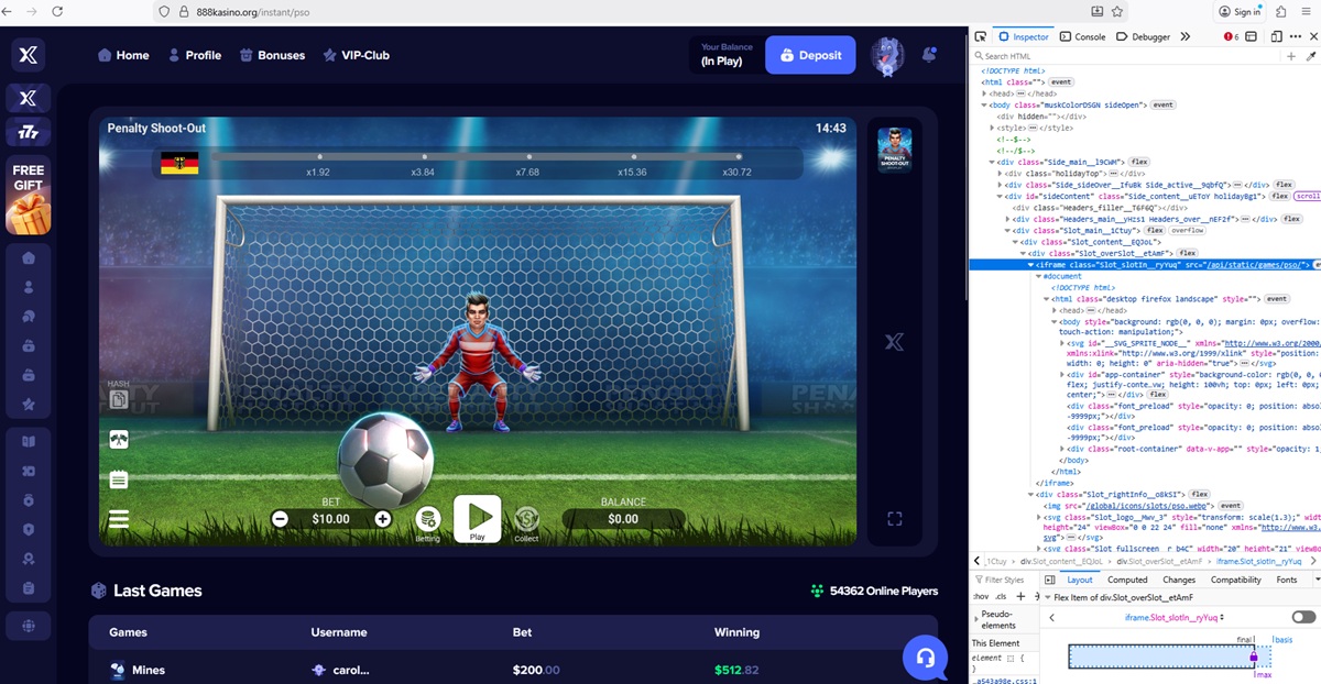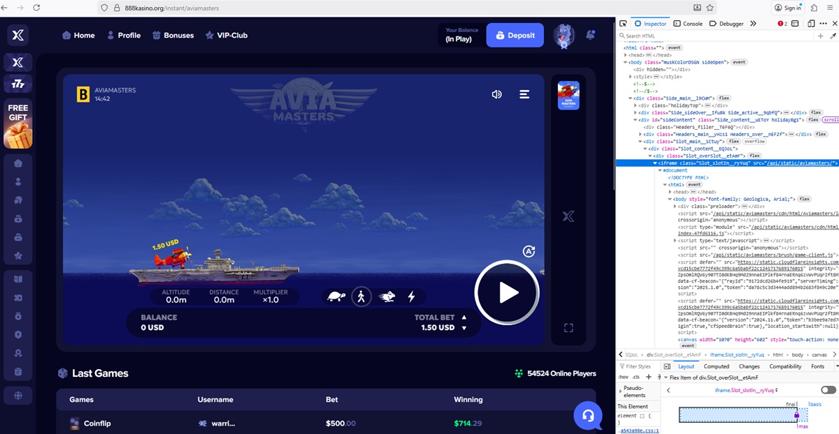 Het casinoplatform toont een lijst met recente weddenschappen en winsten die worden toegeschreven aan vermeende spelers. De getoonde bedragen omvatten ongebruikelijk hoge inzetwaarden en frequente grote winsten, die niet stroken met realistisch spelersgedrag en gangbare gokpatronen.