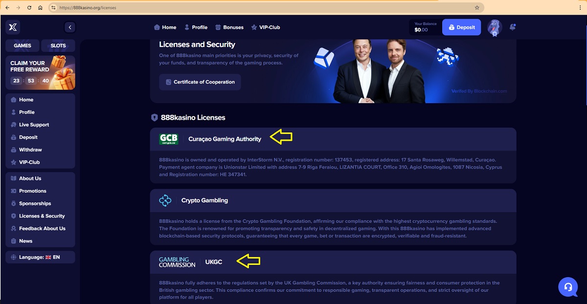 ➡️ Conclusie: De informatie op de website van 888kasino.org laat duidelijk misbruik en onjuiste voorstelling van licentiegegevens zien. Verschillende entiteiten worden inconsistent als exploitant aangewezen en licentienummers zijn ingetrokken, verlopen of toegewezen aan bedrijven die niet de daadwerkelijke exploitanten zijn.