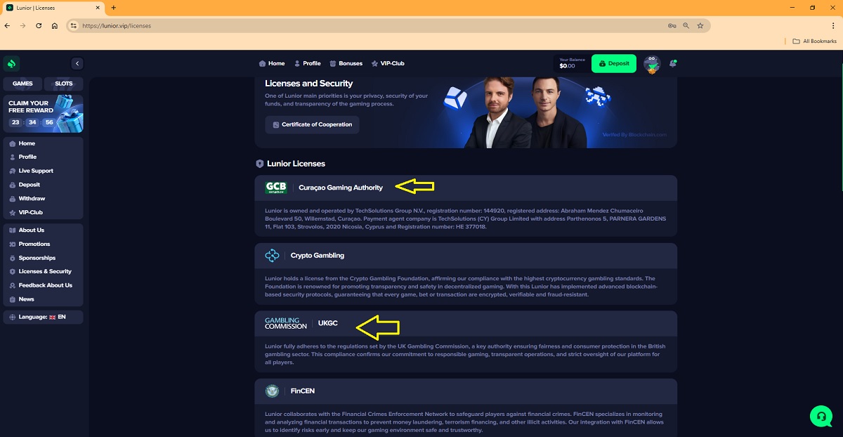 Ondanks hun beweringen beschikt lunior.vip niet over een vergunning van de Britse Kansspelcommissie. De informatie op hun website is misleidend, aangezien ze niet geautoriseerd of gereguleerd zijn door de Britse Kansspelcommissie.