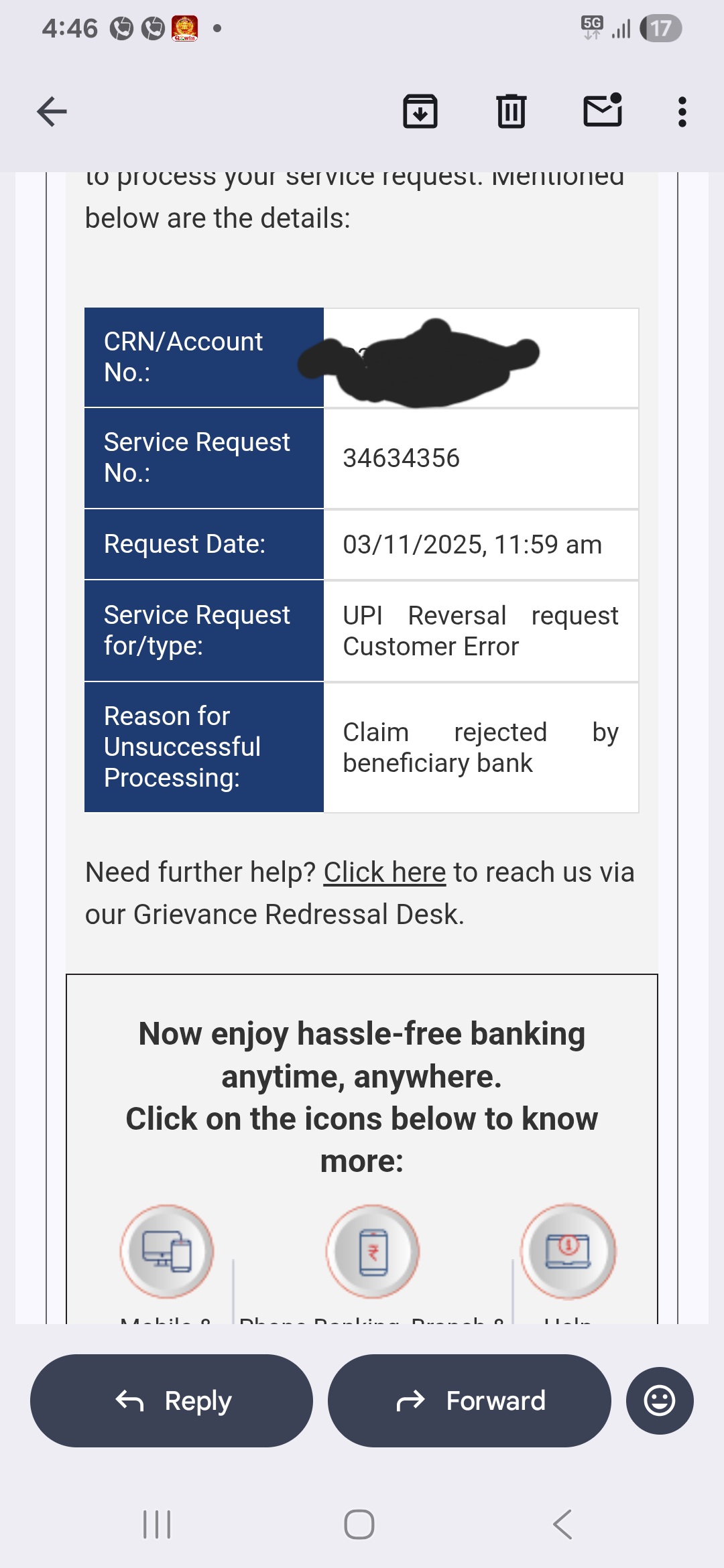 Zodra we dit hebben, zullen we de klacht verder behandelen.