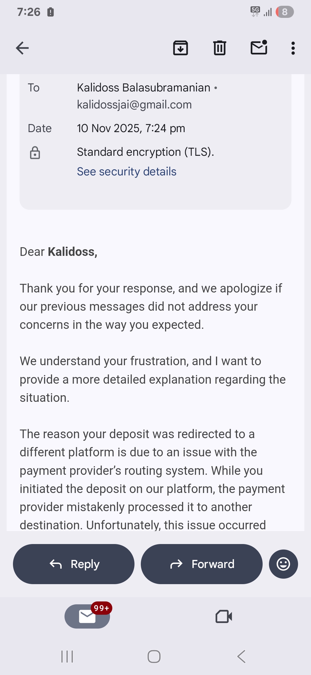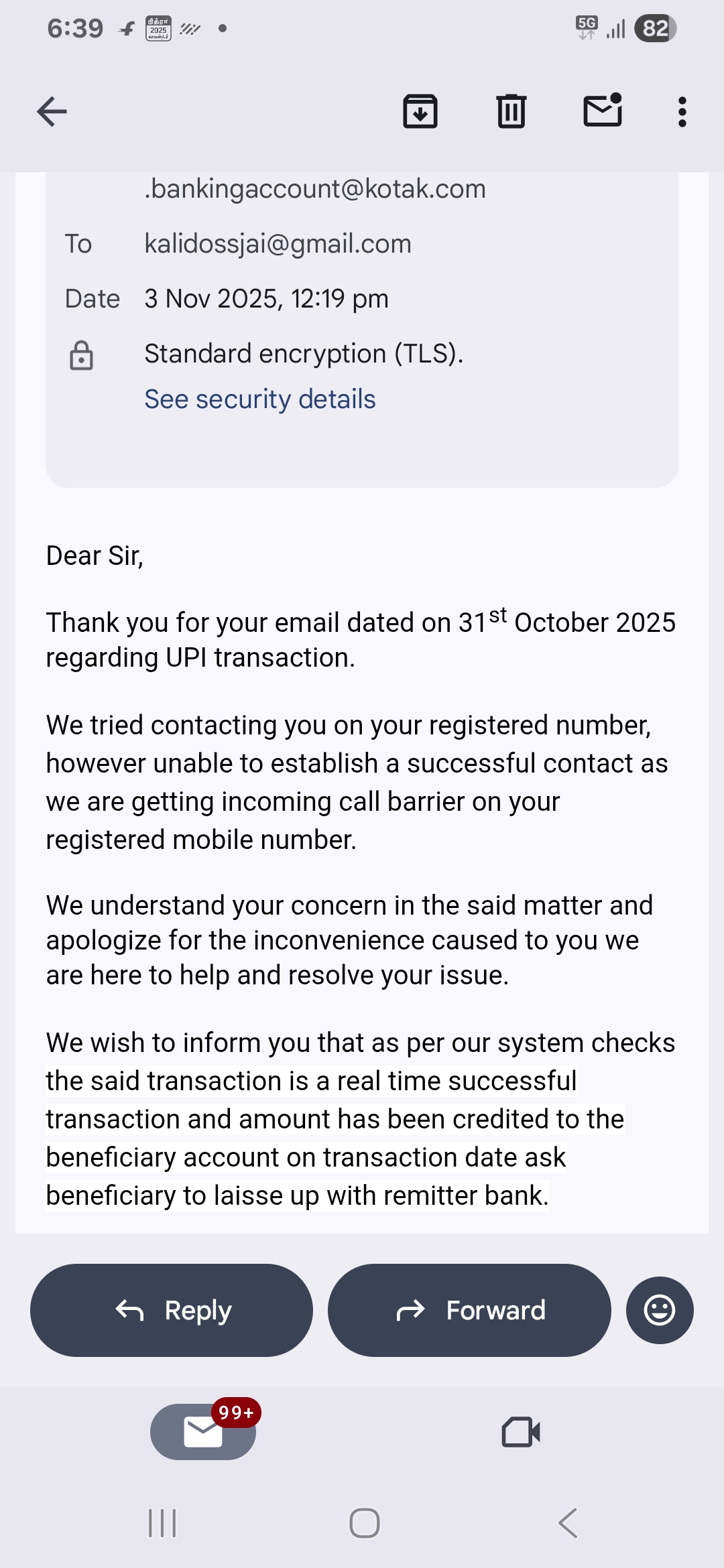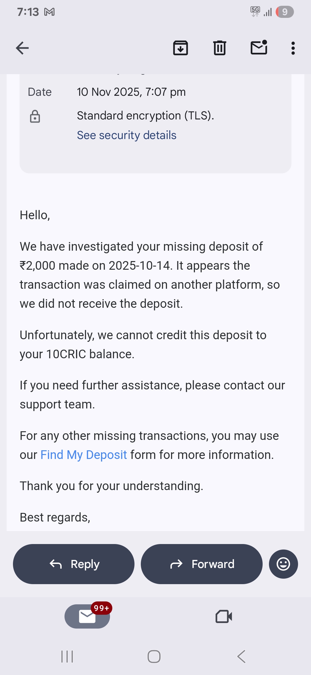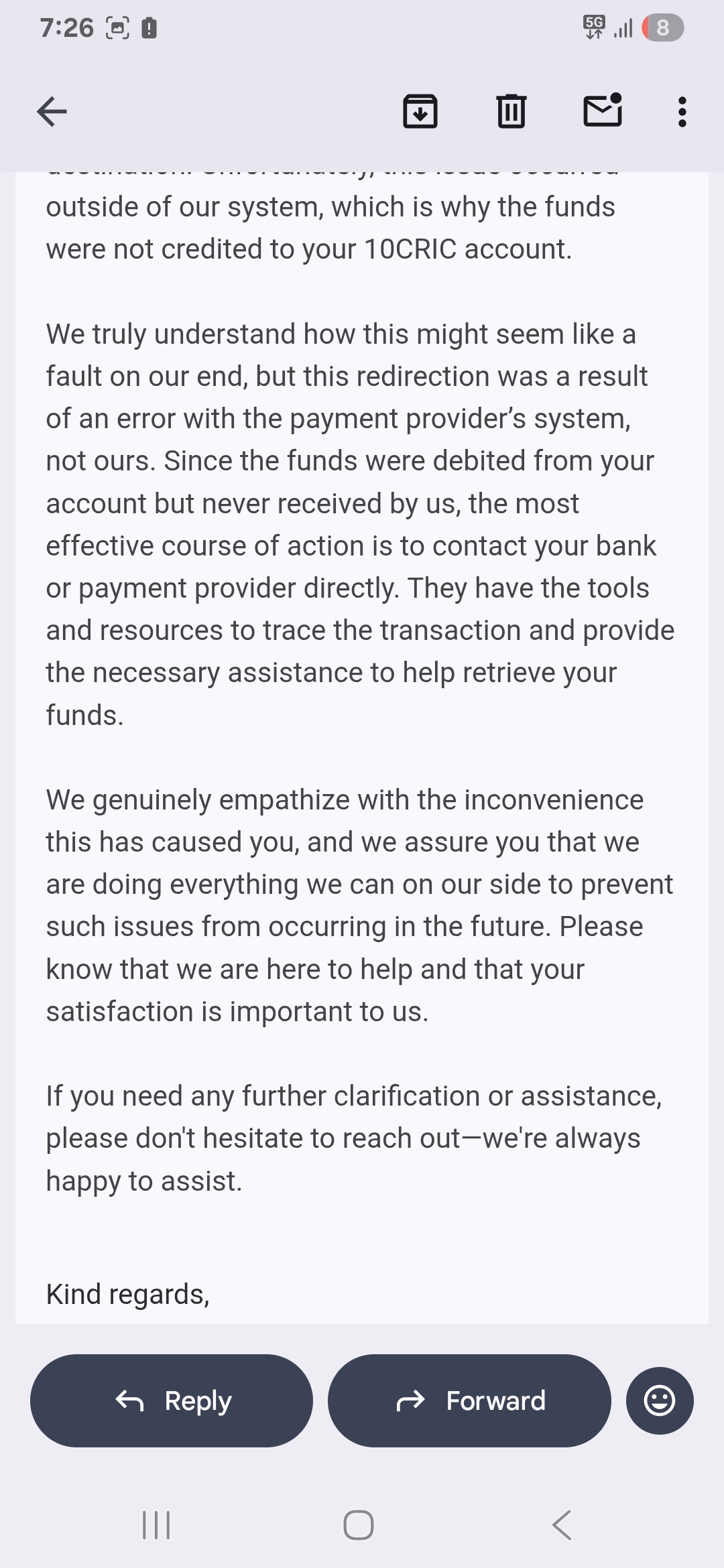 Een van je screenshots laat zien dat de betaling succesvol is verwerkt aan jouw kant, maar dat deze naar een individuele UPI-ID is gegaan in plaats van naar de officiële merchant account van 10Cric. Dat zou kunnen verklaren waarom het casino het geld nooit heeft ontvangen.