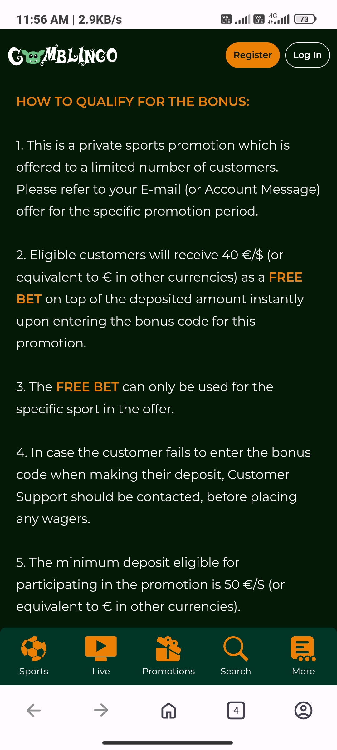 Het systeem stelde me in staat om deze bonussen normaal te claimen en te gebruiken.
