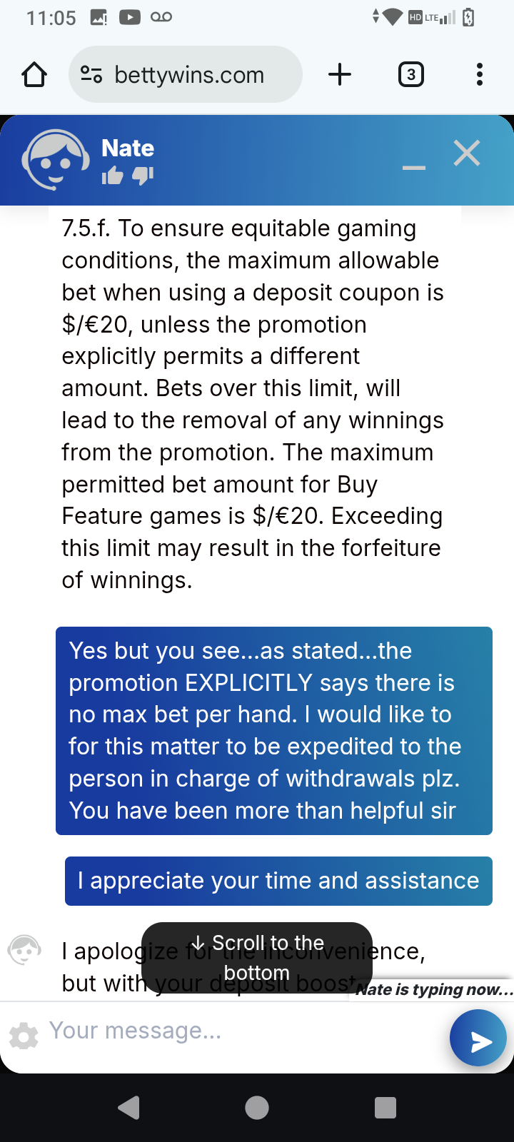 Thank you for reaching out to us, and we are sorry for your negative experience at BettyWins Casino.