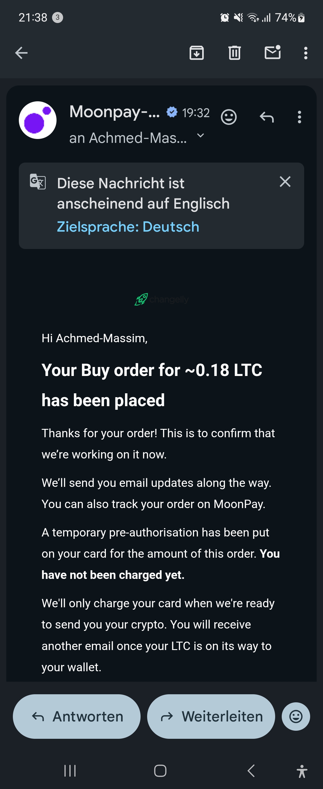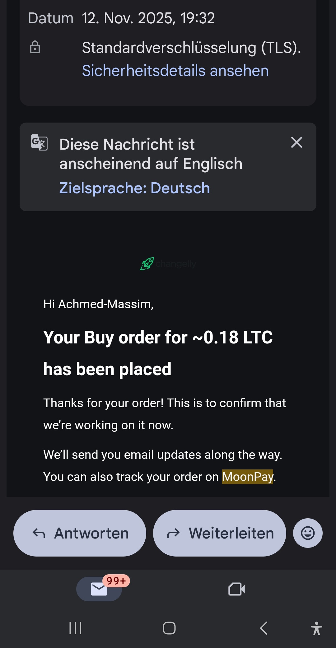 Ik heb screenshots van mijn storting. Ik heb deze naar de support gestuurd, waarop te zien is wanneer ik de storting heb gedaan, op 12 november om 19.32 uur in Duitsland. Ik heb ook screenshots van Moonpay naar de support gestuurd, die ik moest gebruiken om mijn account via jullie casino te registreren en te verifiëren om een storting te kunnen doen. De betaling is verwerkt, maar moet nog worden gecontroleerd, wat tot 72 uur kan duren. Het is niet mijn schuld dat de betaling moest worden gecontroleerd door, ik benadruk het, jullie betalingsprovider en pas op 13 november is aangekomen. Vreemd genoeg stond mijn eerste storting bij jullie, met dezelfde account en ook via jullie betalingsprovider, na ongeveer 10 minuten op mijn rekening. Ik heb alle screenshots nog steeds.