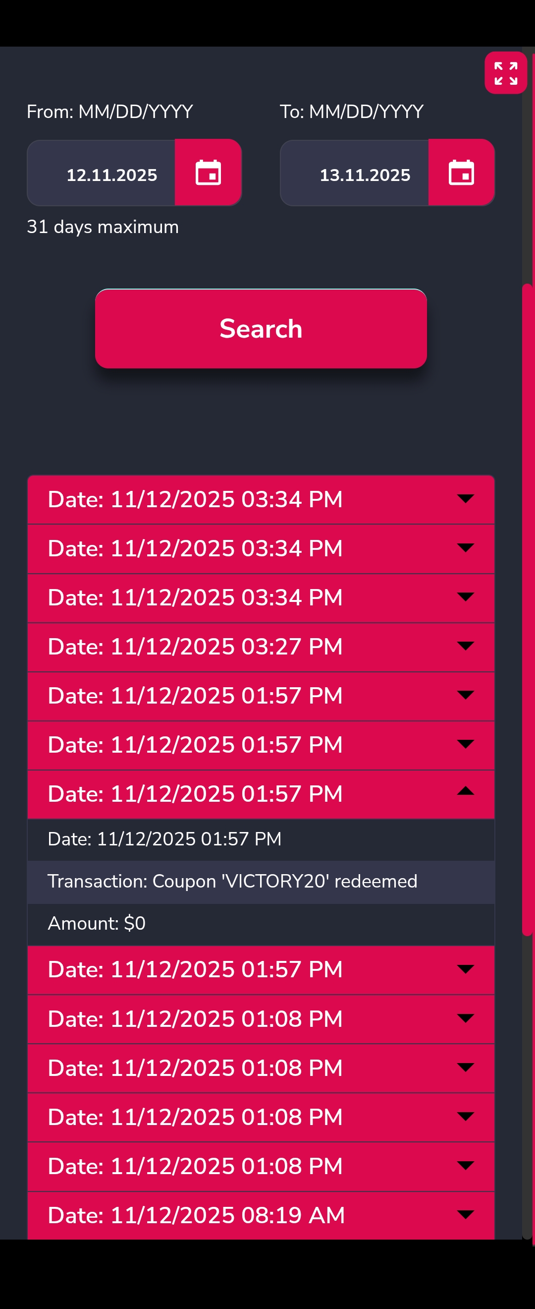 *Winnings voided - 11/12/2025 15:34:34- Deposit – 11/13/2025 11:26:39