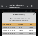 Ik heb hulp nodig bij het oplossen van een probleem met mijn Limitless-account. Ik heb twee keer geprobeerd om via de chat hulp te krijgen, eerst van Steve en daarna van Martha. Beide keren heb ik het probleem uitgelegd, werd me gevraagd even te wachten, en vervolgens werd de chatverbinding na een paar minuten verbroken, zonder reactie of opmerkingen. Het probleem is nog steeds niet opgelost. Dat was dus een zeer onbehulpzame ervaring, en aangezien mijn tijd ook waardevol is, heb ik besloten het niet nog een derde keer te proberen en in plaats daarvan naar het LCB-forum te gaan voor hulp van een medewerker van het casino. Het is een vrij simpele situatie, dus wat het probleem ook is, het ligt aan het casino, niet aan mij. Ik heb een cashback-promotie aangevraagd omdat ik een paar keer had verloren bij schone stortingen. Ik ontving $7,41. Ik heb aan de vereiste inzetvereisten voldaan en ben naar de bank gegaan met ongeveer $100,00 op mijn account om een opname aan te vragen voor het maximale opnamebedrag van $50,00. De opname werd echter niet verwerkt, omdat er stond dat ik niet genoeg saldo had. Er staat een werkelijk saldo van ongeveer $101 en een bonusbedrag van ongeveer $101,00 op mijn rekening. Er is geen bonus gebruikt, alleen de cashback van $7,41 en de vereiste inzetvereisten. Zou u mij alstublieft kunnen helpen dit probleem op te lossen, zodat ik mijn geld kan opnemen? Dank u wel! Gebruikersnaam: Cheriberi